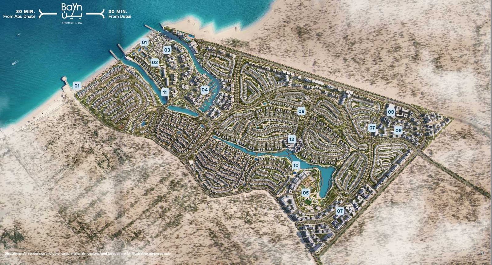 Bayn by ORA is a master-planned beachfront community that seamlessly blends modern architecture, sustainability, and luxury living. Located between Abu Dhabi and Dubai, this coastal haven spans 4.8 million square meters, offering the perfect balance of nature and urban convenience.