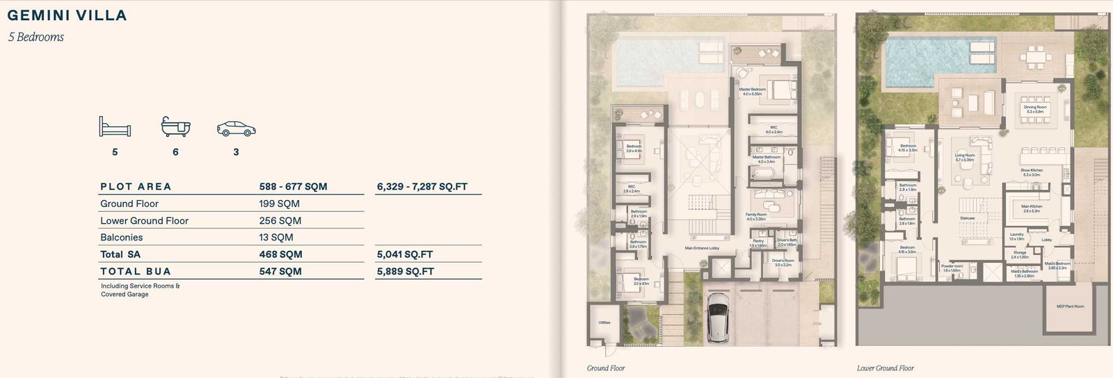 Explore a variety of contemporary residences, including Gemini Villas, Double-Height Villas, Core Villas, and 3–5 bedroom Townhomes. Each home features spacious layouts, floor-to-ceiling windows, and direct access to lush green parks, pristine lagoons, promenades, and the Arabian Gulf shoreline.