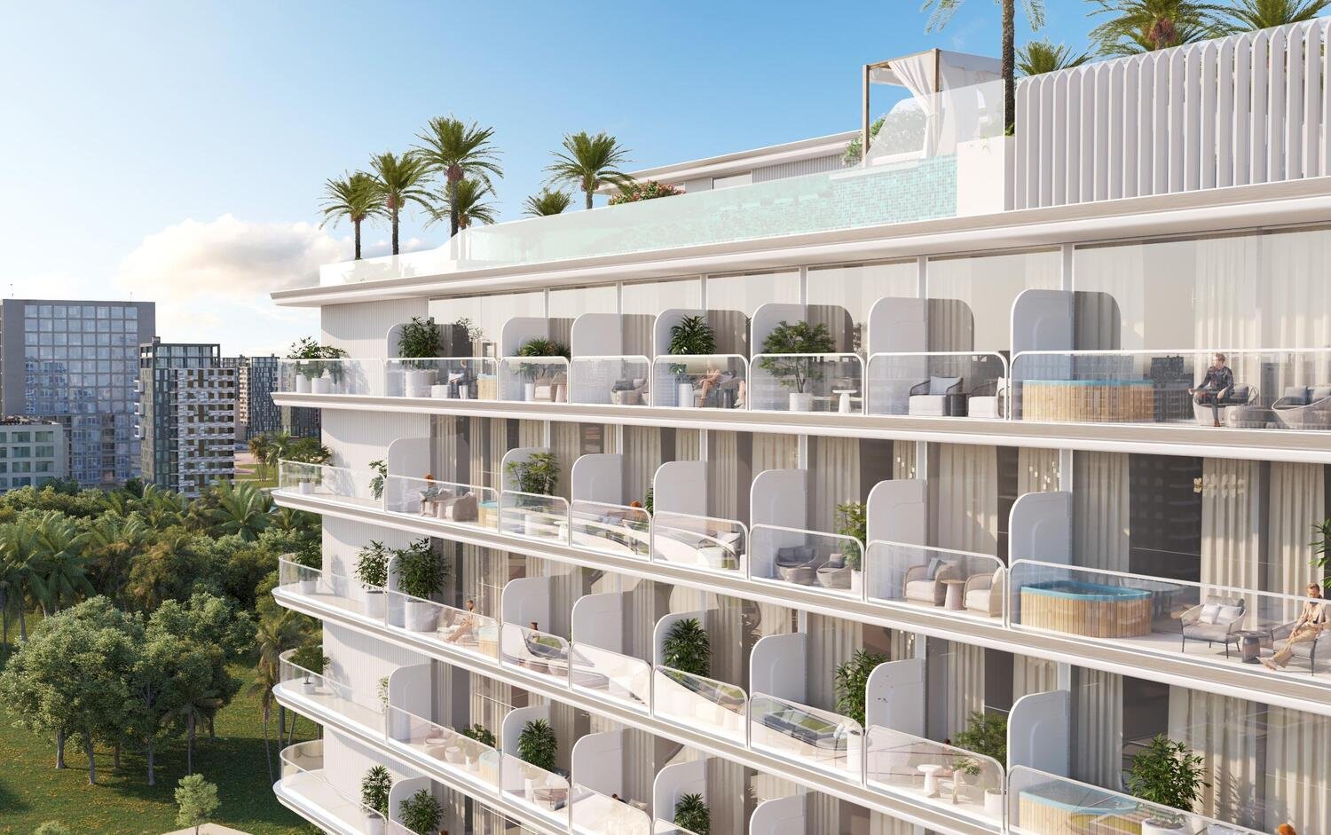 Cove Edition 5 elevates daily life through a rich collection of amenities. A rooftop infinity pool offers panoramic views of the skyline, while landscaped gardens, fitness centers, and dedicated family spaces provide opportunities for wellness and connection. The development also includes a modern clubhouse and serene communal areas, creating a lifestyle that is equally social and serene. Every element is designed to enrich living, offering a sanctuary that celebrates calm, beauty, and purpose.