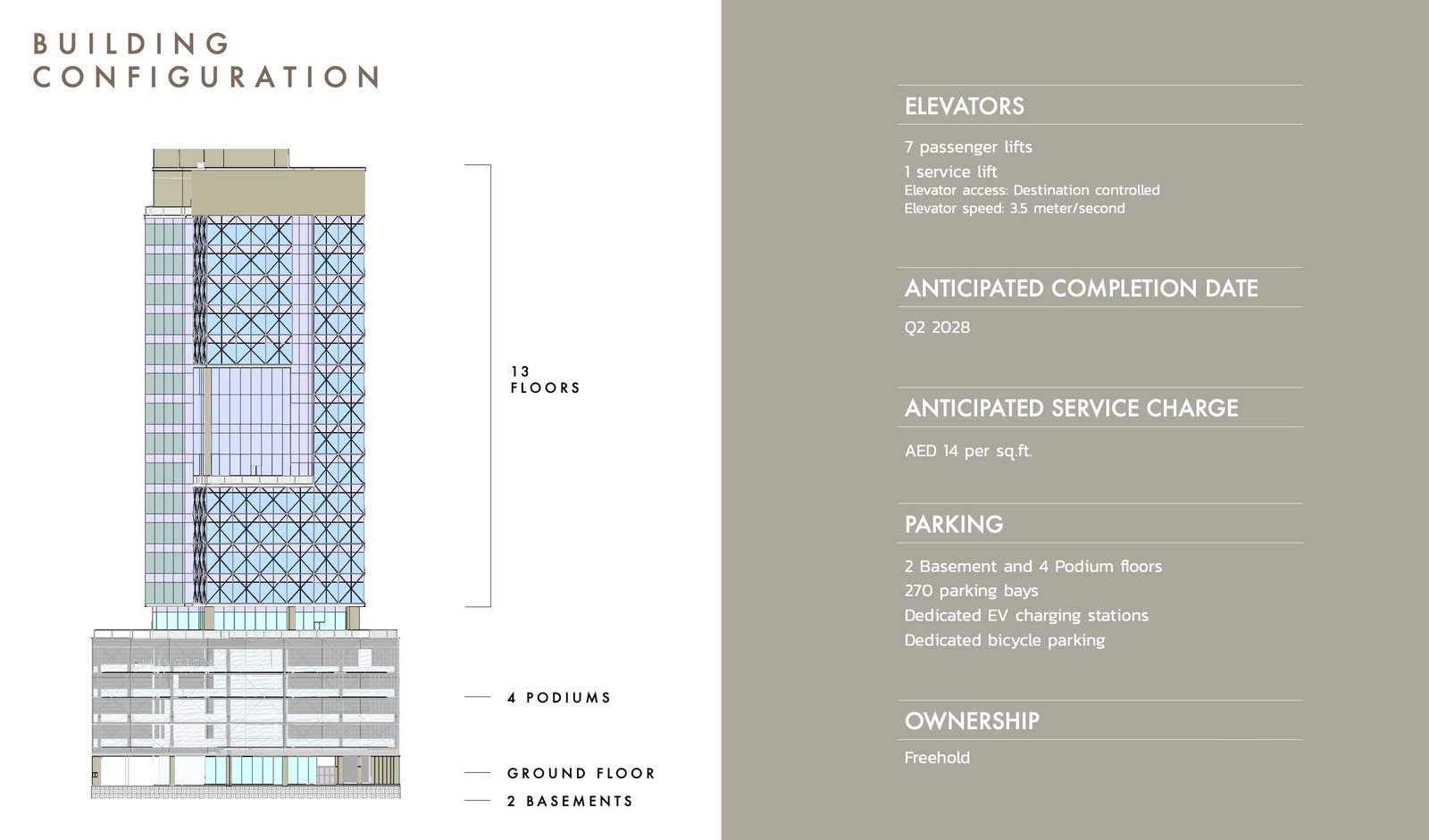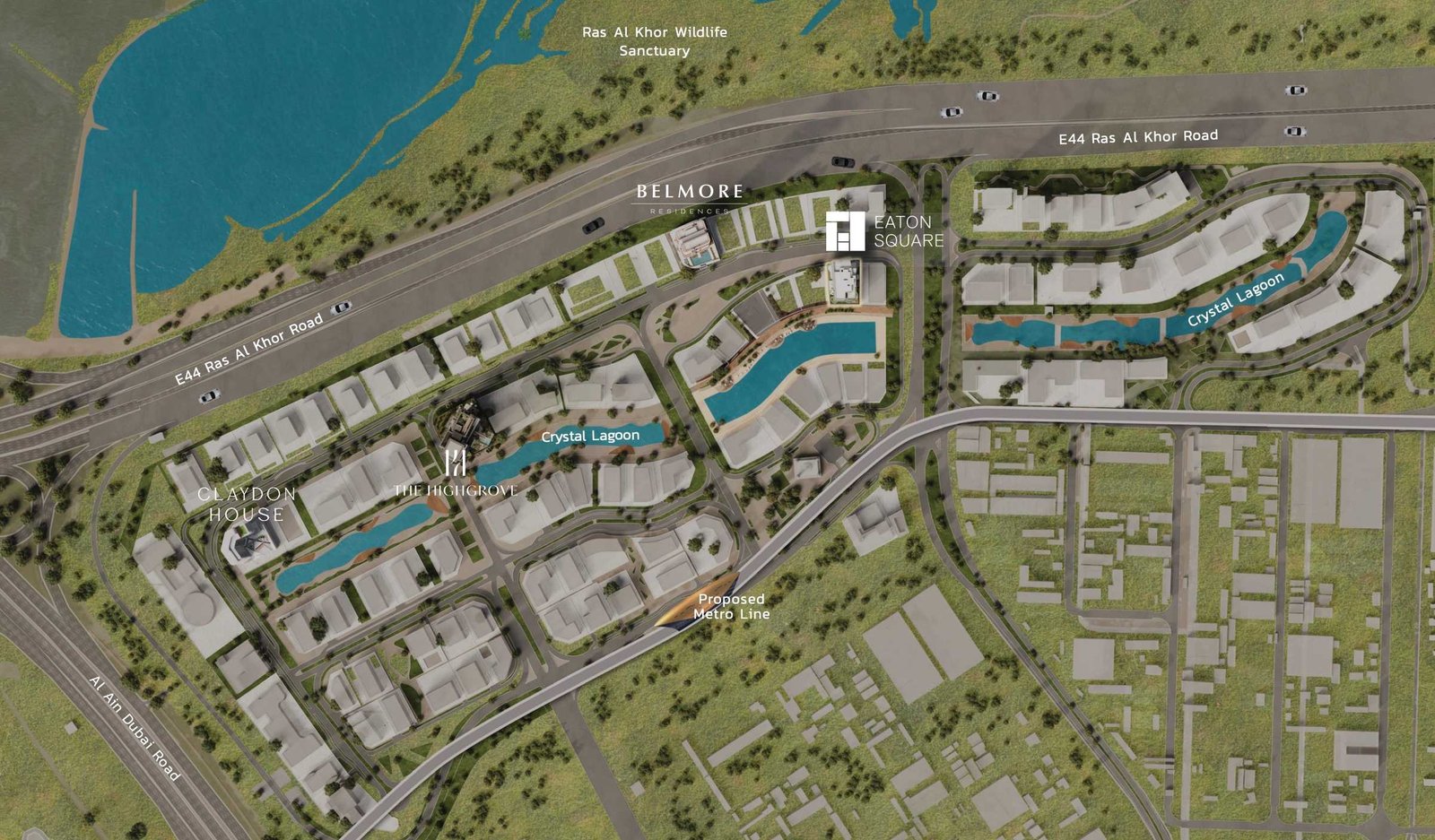 Strategically located just minutes from Downtown Dubai, Business Bay, DIFC, and Dubai Design District, Eaton Square offers 153,507 sq. ft. of Grade A office space overlooking the serene Crystal Lagoon and Ras Al Khor Wildlife Sanctuary. Future-proofed with direct access to the upcoming Dubai Metro Green Line extension, this prestigious address blends architectural precision with nature-inspired environments to promote productivity, creativity, and well-being.