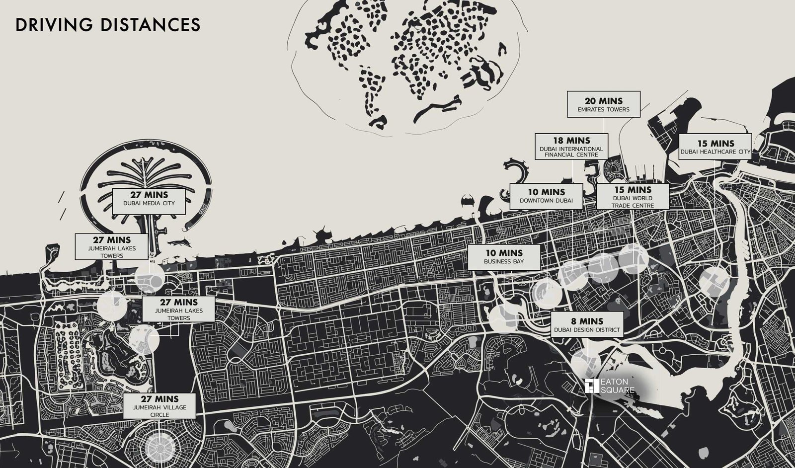 Connectivity: 8–20 mins to Dubai’s major business hubs & airports