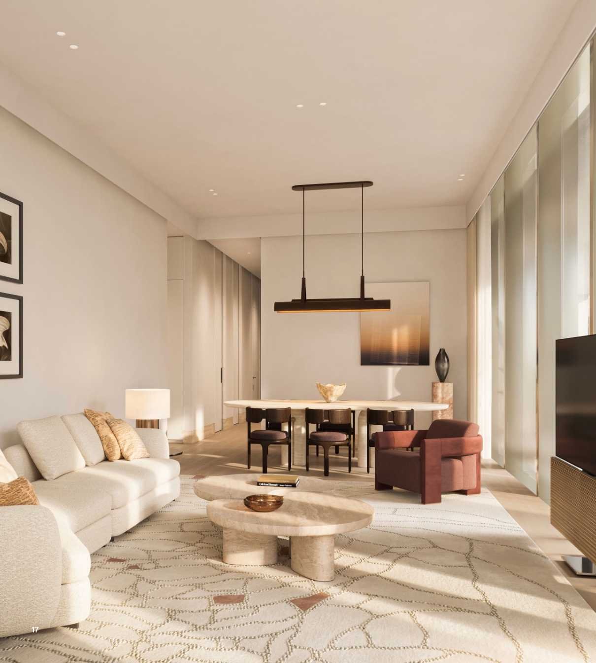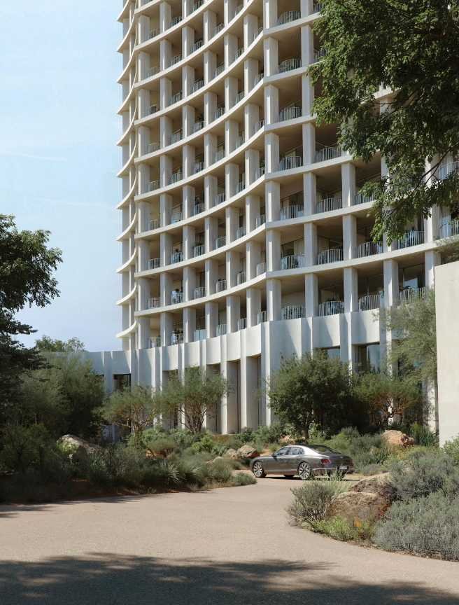 Choose from 1 to 3-bedroom homes ranging from 1,130 to over 3,050 sqft, designed with open layouts, natural materials, and skyline views. This 43-floor tower blends architectural simplicity with elevated private club-style living.