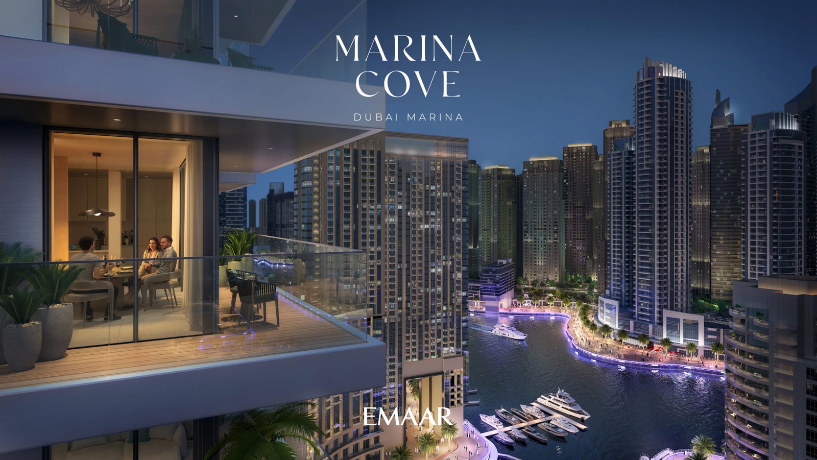 Marina Cove at Dubai Marina is the latest pristine residential addition defining the skyline, a new project by Emaar Properties lined with premium collection of 1, 2, 3 & 4-bedroom apartments. This high-rise façade sets to define the vibrant marina with exceptional blend of modern architecture, cutting-edge amenities, and breathtaking views. The architecture rises in the sky as beacon of sophistication and exclusivity, providing its residents an unparalleled lifestyle experience that capture the essence of cosmopolitan allure. The exclusive class waterfront façade seamlessly blends the vibrant pulse of the city life with the tranquillity of waterfront living at ease.