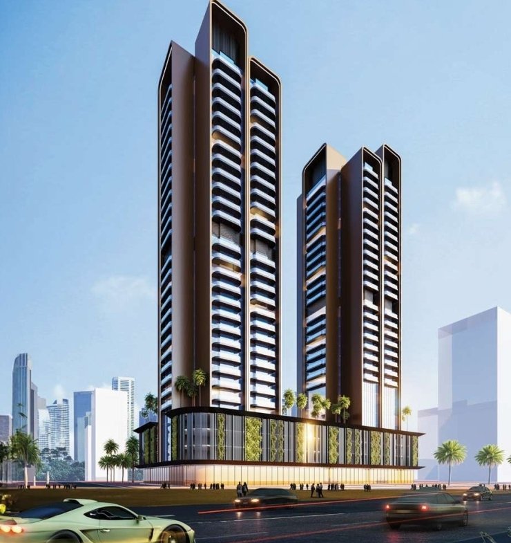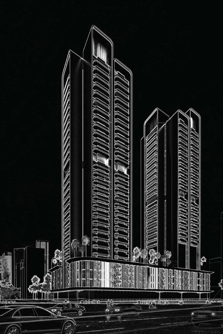 These twin towers are a visual delight characterised by their sleek, modern facades and the artistic symmetry they embody together. The central pool area not only connects the towers but also serves as a striking visual feature, setting the tone for the projects commitment to luxury and serenity. Each tower is a harmonious balance of form and function, with meticulously designed layouts and beautiful serene environment to entertain its guests and residents. The attention to detail in architecture extends to the shaded areas, Including the grand lobby that welcomes residents and visitors alike.