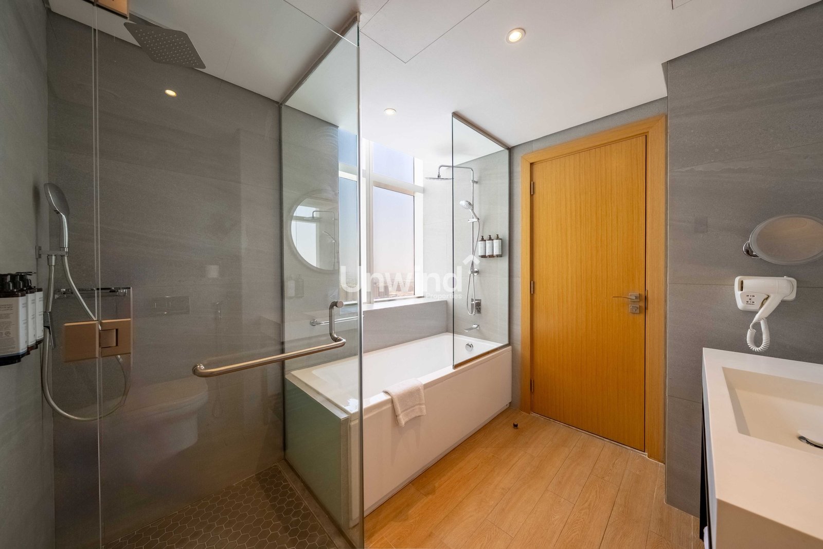 Unwind Properties is proud to present this Spacious, fully furnished, modern designed Duplex with private pool. Kitchen Equipped with all the appliances & enjoy the free Access to hotel’s pool, kid’s Aqua Park and gym. Avail a discount in all the restaurants including room service, laundry and spa within the complex.