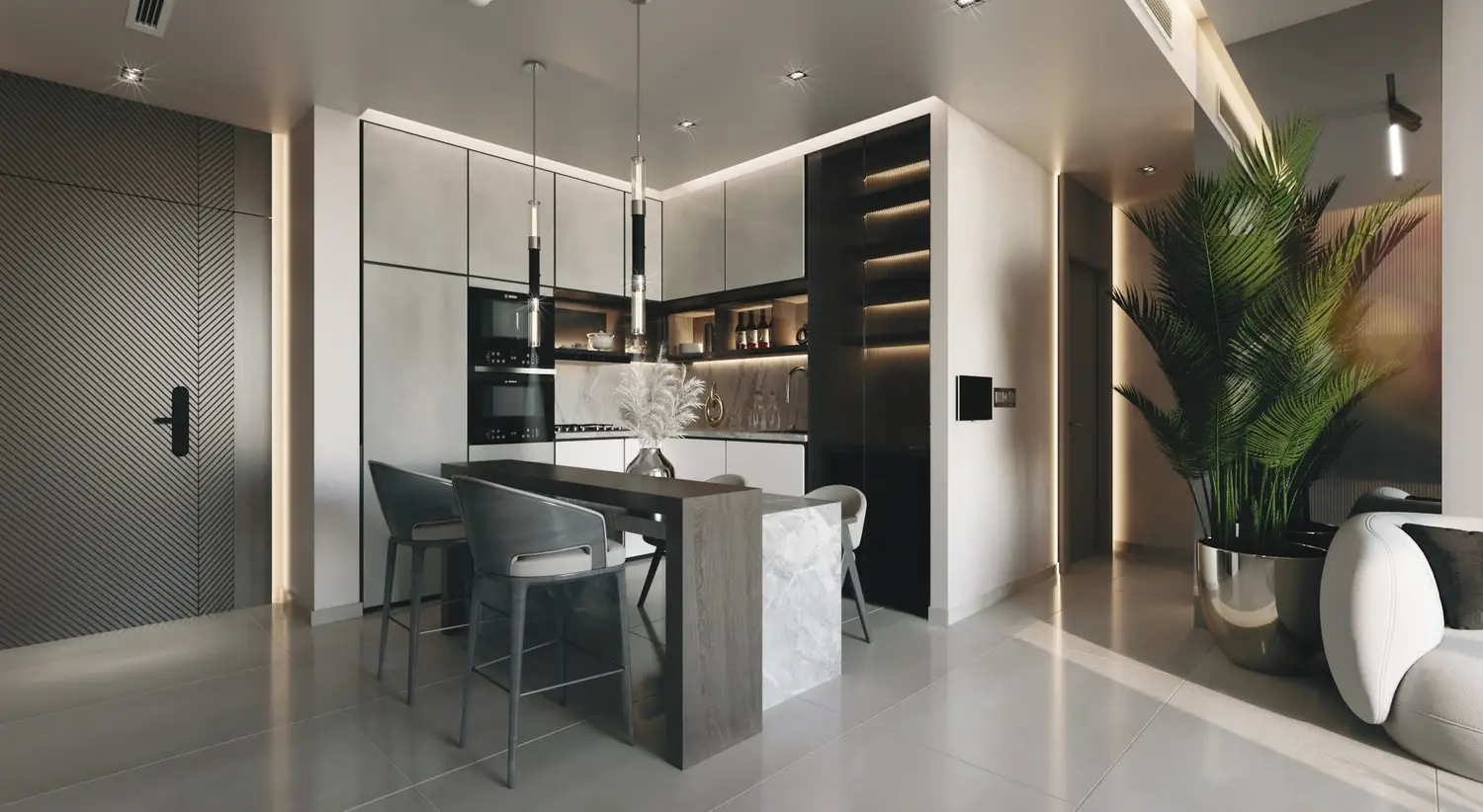 The residence includes 121 units in total, ranging from studios to one- and two-bedroom apartments. Each home is thoughtfully designed to maximize space and natural light, featuring open layouts and high-quality finishes. Kitchens and bathrooms are equipped with premium built-in solutions and elegant fittings, ensuring a blend of functionality and refined aesthetics.