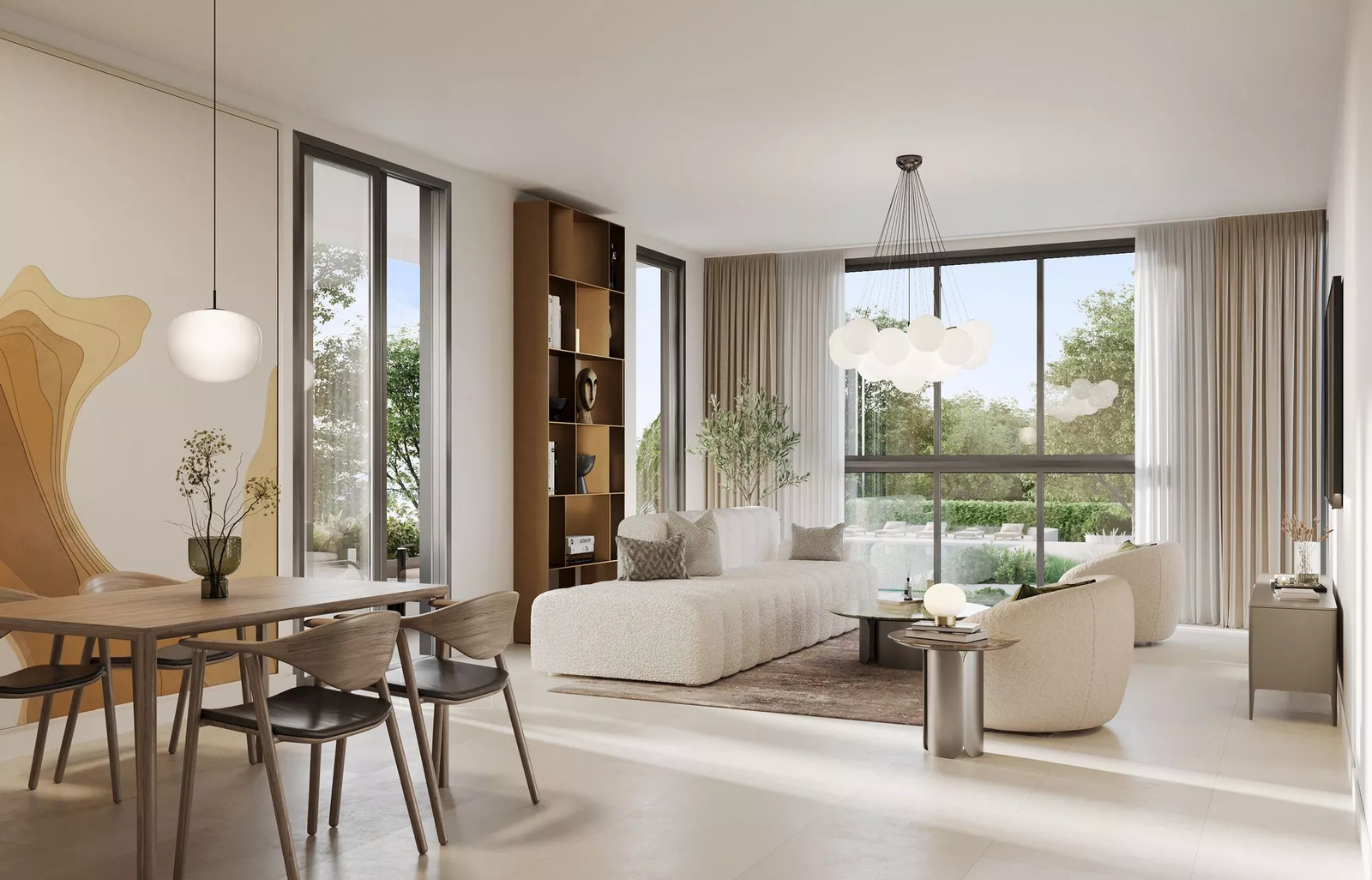 Terrazzo is a premium development by Taraf, the real estate division of the investment holding group Yas Holding, in Jumeirah Village Circle (JVC). It consists of 2 six-floor buildings, with 1–3 bedroom apartments ranging in size from 771 sq. ft to 2,121 sq. ft. The floor plans feature one or more balconies and terraces, whilst the 3-bedroom residences will be additionally equipped with a maid’s room. The nature-inspired decor will be executed in warm earthy green, brown and blue colours.
