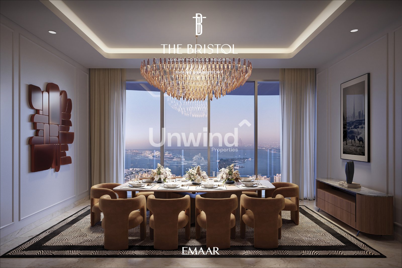 With breathtaking panoramic views of Palm Jumeirah, Atlantis, Dubai Marina, and Burj Al Arab, The Bristol seamlessly blends opulence, convenience, and timeless elegance.